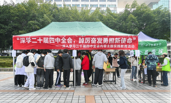 为深入学习贯彻党的二十届四中全会精神,引导青年学生坚定理想信念、强化使命担当,11月28日下午,食品学院学生党建服务中心在雅安校区十教前开展了“深学二十届四中全会,踔厉奋发勇担新使命”主题实践教育活动。活动吸引了约150名在校学生积极参与,现场组织有序、氛围热烈。