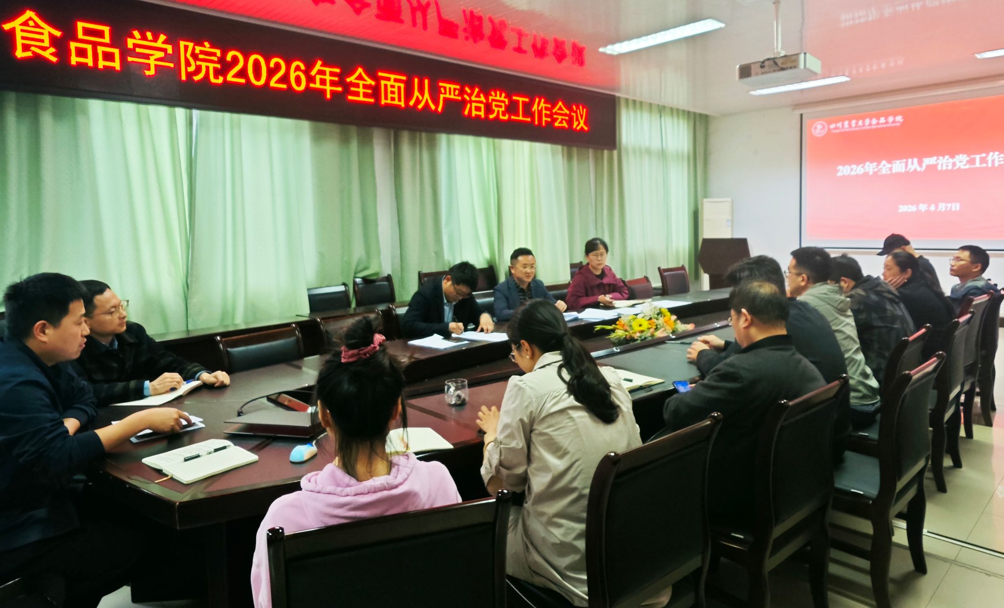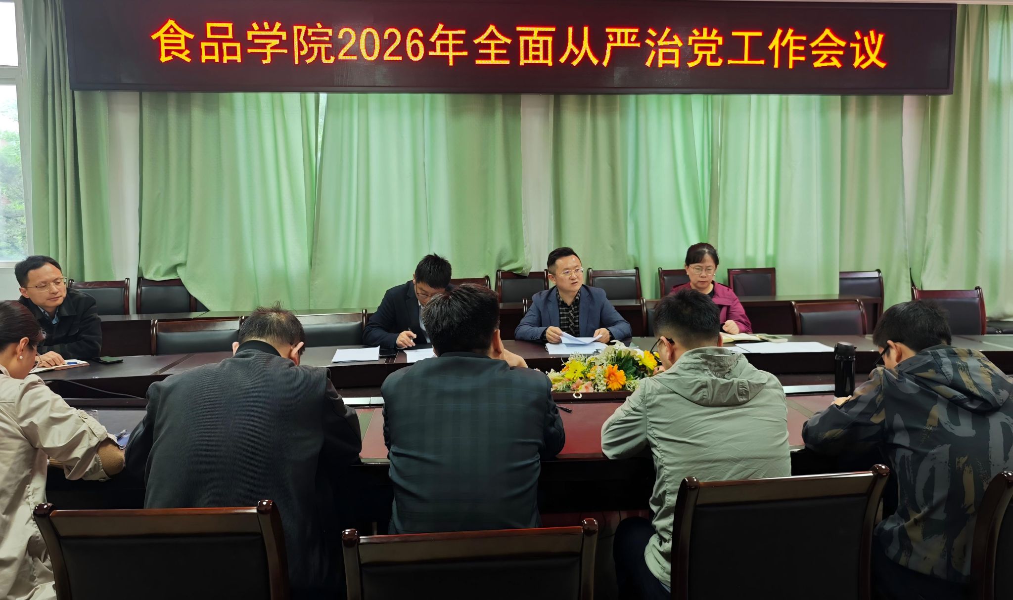 为深入学习贯彻习近平总书记关于全面从严治党的重要论述,全面落实党的二十届中央纪委五次全会精神以及学校党委部署要求,4月7日下午,食品学院在三教206会议室召开2026年全面从严治党工作会议。会议总结2025年学院全面从严治党工作,分析当前形势,安排部署2026年重点任务,推动学院全面从严治党向纵深发展,为学院“十五五”高质量发展提供坚强政治保障。学院领导班子成员、党委委员、纪委委员、党支部书记、系室主任及行政管理人员参加会议,会议由党委书记何勇主持。