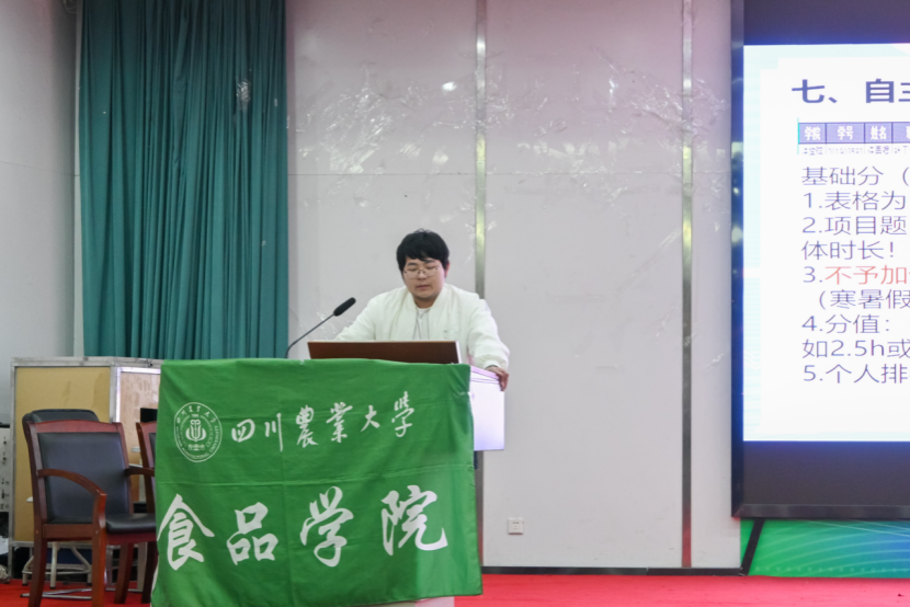 首先由负责人王译涵为2025级新生详细介绍了第二课堂的组成,包含基础分和附加分两个板块,其在综测中占比为20%,并详细解读了德育、智育、体育、美育、劳育五个板块的加分规则及注意事项。她着重强调基础分每学年不累加,而附加分按学年累加,其中计入最终二课成绩的附加分,需按其总分的25%折算,两者虽设有上限,但达到上限也可继续参加活动。