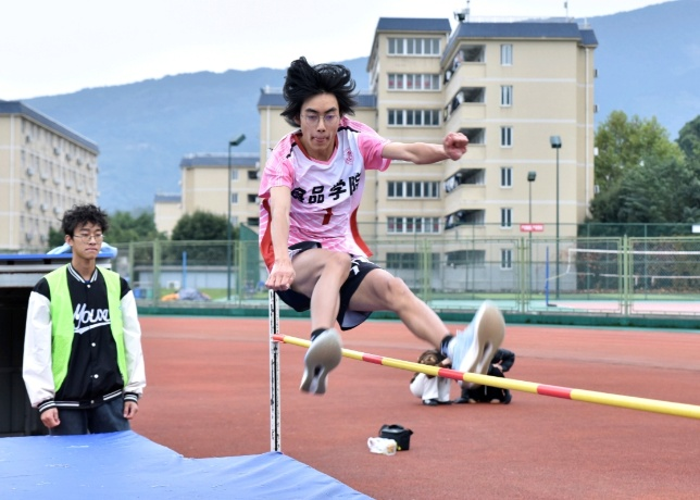 田赛项目中,跳高如轻燕掠杆,划出向上的弧线;跳远似羚羊腾空,落定拼搏的印记。食品学院健儿,用汗水“发酵”精彩!