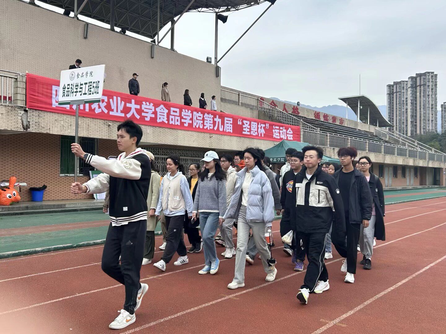 暖阳倾洒,热血拼搏。2025年11月9日,四川农业大学食品学院第九届“圣恩杯”运动会在这清冽与热情交织的冬日里成功举办。风在耳边呼啸,呐喊声震破天际,食品学院300余名运动健儿以无畏的热血,在赛场上留下属于自己的青春。