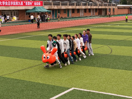 团体项目中,毛毛虫竞速整齐划一,抱球接力稳中求快;拔河赛场聚力凝心,长绳跃动默契满分。食品学子以集体之名,在协作中突破自我,用汗水诠释青春最美的“配方”。