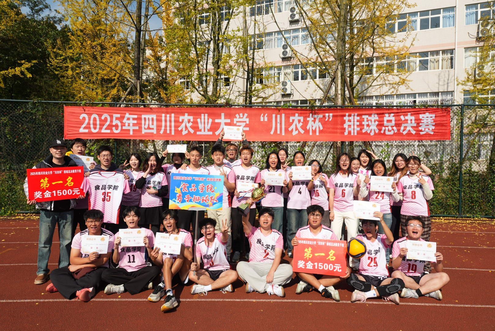 11月22日,2025年四川农业大学三校区“川农杯”排球总决赛在都江堰校区举行,经过激烈比拼,食品学院男子排球队获得冠军。