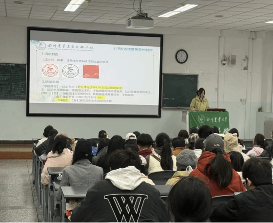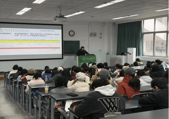 2025年11月30日,四川农业大学食品学院第二课堂成绩单运营中心在第十教学楼A203教室成功举办了面向全院活动负责人的i川农系统运营专题培训会。本次培训由第二课堂成绩单运营中心主要负责人余泓瑾、谭哲旭主讲,系统讲解了活动发布、加分申请及数据处理的规范流程,助力第二课堂运营提质增效。