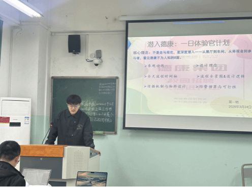 课程后半段,三个小组的学员代表依次登台,展示了各自精心策划的“潜入德康:一日体验官”开放日方案。各组均围绕“深度潜入”的核心理念,设计了从展厅到生产车间的全流程参观动线,并融入打卡集印章、盲盒试吃、员工对话沙龙等兼具知识性与互动性的创意环节,让参与者在体验中学习专业知识、感受企业文化。各小组成员还分别介绍了自己在项目中的具体分工,充分展现了高效的团队协作能力。展示结束后,三组学员相互点评,纷纷肯定对方方案的创意亮点,在交流碰撞中相互启发、共同进步。