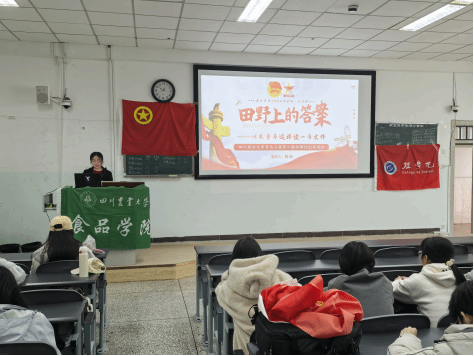 为深入学习贯彻全国两会精神与中央一号文件要求,树立和践行正确政绩观,同时喜迎学校百廿校庆,凝聚青年学子奋进力量,3月24日,四川农业大学信科202404、信科202406、英语202403、生物202403、食质202405支部及中国饮食文化蕴膳社联合举办“感悟两会精神 喜迎百廿芳华”主题班团活动。活动围绕“两会精神领航向、笃行一号惠三农、立牢政绩风向标、校庆百廿忆初心”四大板块展开,引导青年学子将个人理想融入国家发展与学校建设大局,在学思践悟中勇担时代使命。