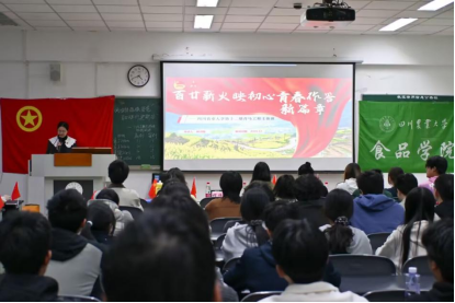 为引领团员青年深刻领会2026年全国两会精神,筑牢理想信念之基、深植家国情怀,并以饱满的精神面貌迎接学校百廿校庆,3月31日,四川农业大学食品学院团委直属部门流动团支部联合食工202404班、食工202406班、食健202402班、食健202502班团支部,在10-B201教室成功举办“感悟两会精神,喜迎百廿芳华”3-4月示范性班团活动。食品学院党委副书记、纪委书记汤瑞瑞受邀出席。