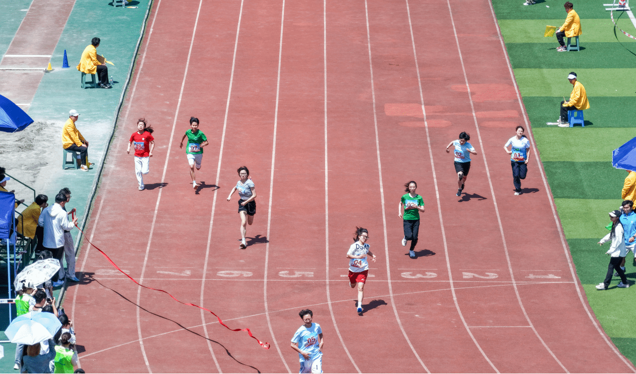如果说短跑是速度的盛宴,那么长跑则是耐力的炼狱。在800米赛道上,达浩林节奏稳健,斩获男子组第三名;杜佳洋与文厚翼顽强拼搏,分别荣获女子组第二和第六名。而1500 米长跑不仅是耐力的比拼,更是意志的较量。漫长赛道上,她们用坚持书写不凡,用强大的耐力和坚定的信念坚守全程,最终杜佳洋和沈正秀同学分别夺得金牌和第六名的优异成绩。长跑赛道没有捷径,只有呼吸与步伐的反复博弈,他们用持久的奔跑,映衬出食品人坚韧不拔、百折不挠的精神底色。