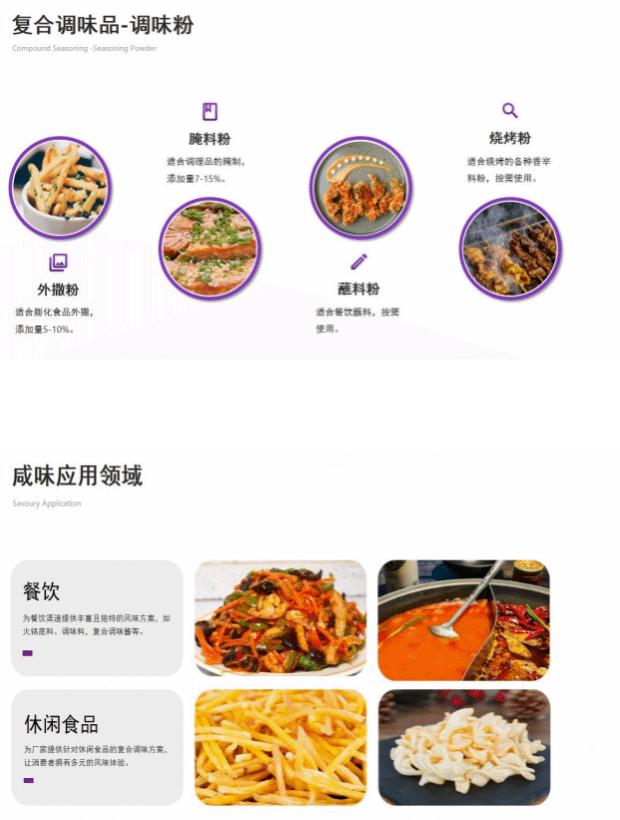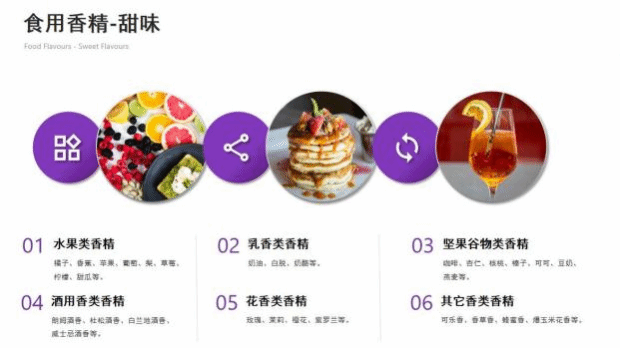 公司主营食用香精、香料、调味品 、复配甜味剂等产品,年产能约 10000吨;产品覆盖乳制品 、饮料 、预制菜 、 火锅底料 、膨化食品、 烘培食品 、糖果、新型烟草等应用领域 。 公司拥有完善的原料 、产品到终端的价值链, 以及一流的合作伙伴; 并且可根据客户需求, 为下游食品生产企业提供一站式的食品研发和相关服务 。公司以卓越与创新 、分享与共赢的经营理念,获得国家高新 、省级瞪羚 、省级技术中心 、省级专精特新、省级创新型企业 、 中国香化协会常务理事长单位等六项荣誉、五项体系 、 四项软著, 同时取得 40多项专利。