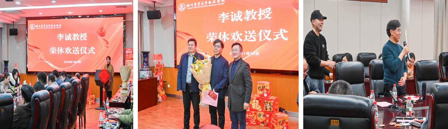 为喜迎2026年新年到来,丰富教职工精神文化生活,增强学院凝聚力与向心力,同时向深耕教育科研一线的退休教师致以崇高敬意。1月15日下午,食品学院在逸夫楼二会议室成功举办“辞旧迎新聚合力,食光筑梦启新程”教职工欢庆2026新年主题活动,并举行李诚教授荣休欢送仪式。副校长、学院院长方正锋,院党委书记何勇,副院长张清,院党委副书记、纪委书记汤瑞瑞和全院教职工齐聚一堂,共话过往成就,共启新年新篇。