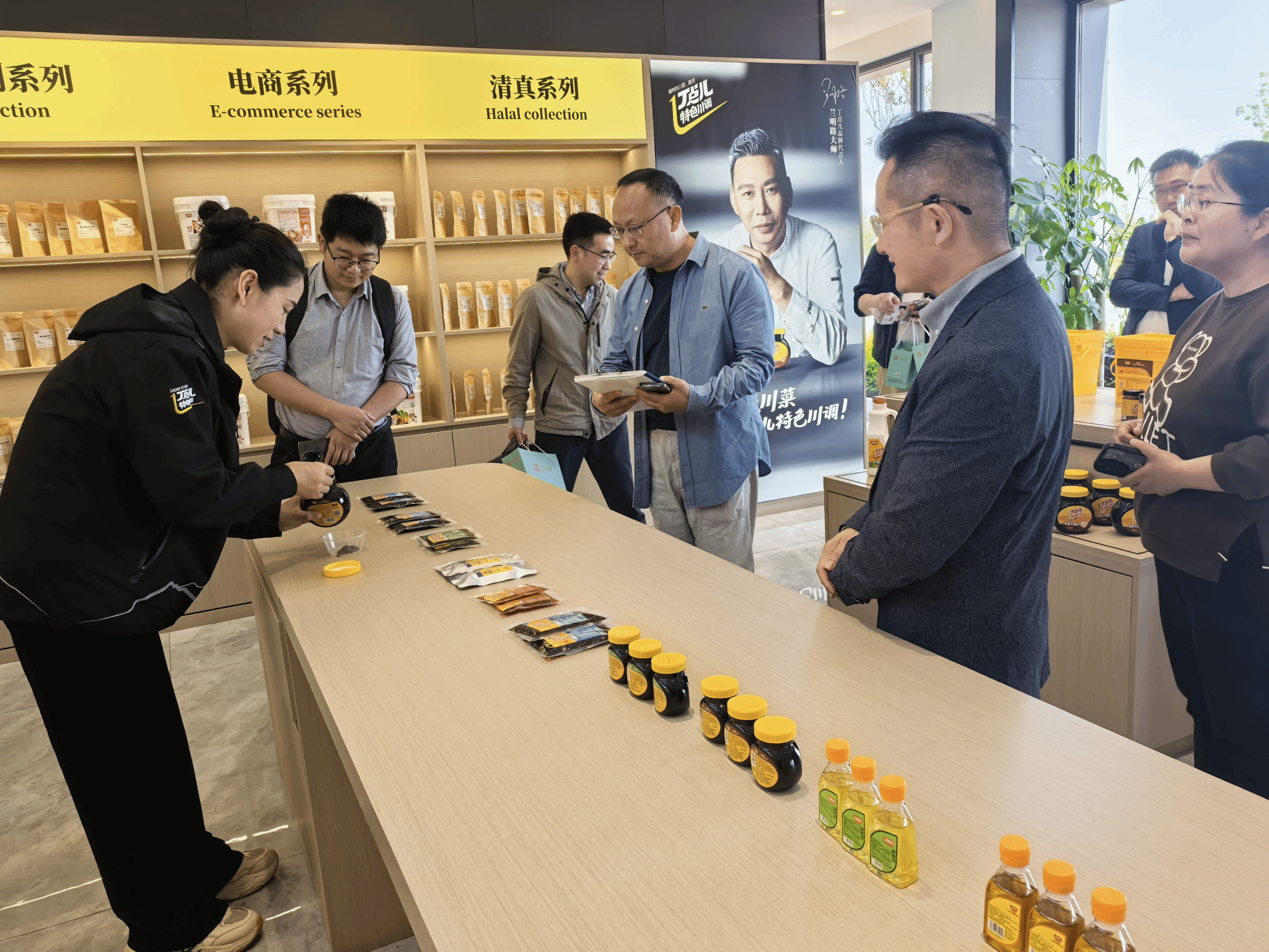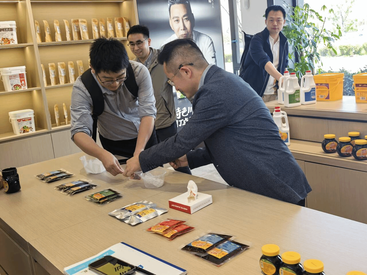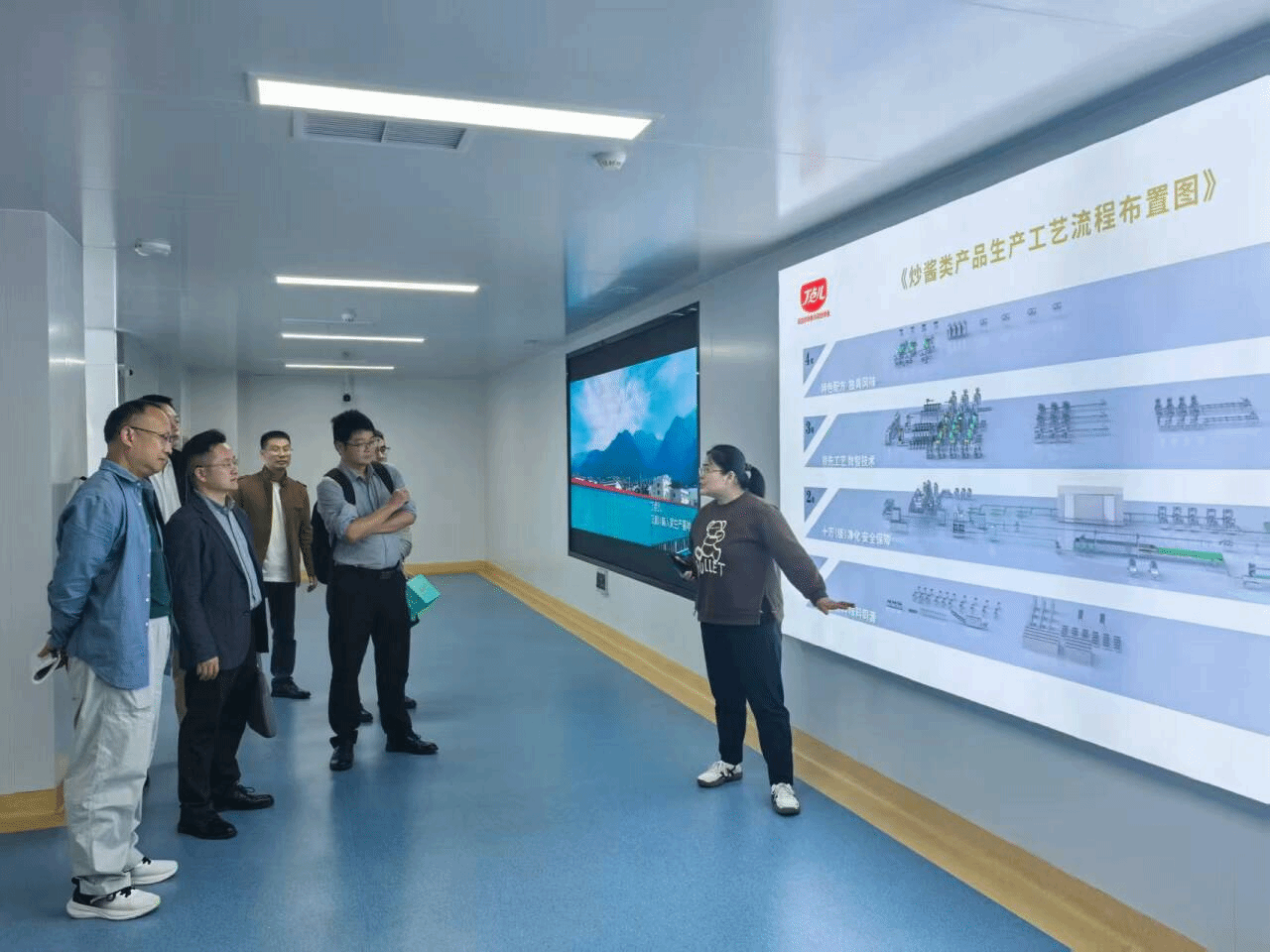 在丁点儿食品副总经理张毅、研发中心副主任罗强祖等人陪同下,一行人参观了反应釜车间、压榨车间、全自动化灌装车间及实验室平台。张毅详细介绍了公司的产品种类,尤其是丁点儿食品的藿香味系列产品,风味独特、独树一帜。