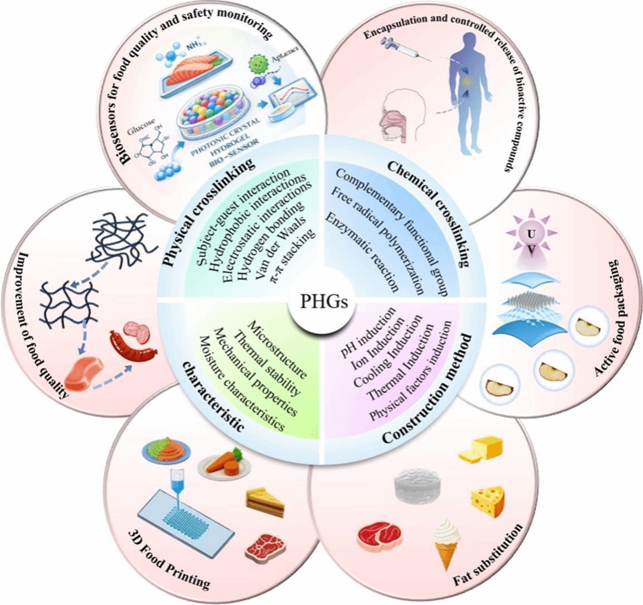 蛋白质水凝胶(PHGs)作为一类由蛋白质分子通过物理或化学作用交联形成的三维网络软材料,凭借其结构可精准调控、超高持水能力与优异生物相容性,成为食品科学领域极具应用潜力的新型功能材料,在食品质构调控、功能因子递送、脂肪替代等方向具有广阔前景。然而,当前全球研究多碎片化聚焦于分子作用、凝胶策略或功能特性的单一维度,缺乏系统性整合,严重制约了统一化、可预测的水凝胶设计理论体系的建立。针对这一关键科学问题,张清教授团队在此基础上,系统讨论了调控凝胶化过程的关键工程策略,深入解析了温度、pH、酶、离子强度等外部刺激因子如何精准控制蛋白质网络结构的动态形成与演化。研究开创性地建立了水凝胶“微观结构-宏观功能”的内在关联,重点阐释了其力学强度、保水性能、微观形貌与环境响应特性之间的构效关系。